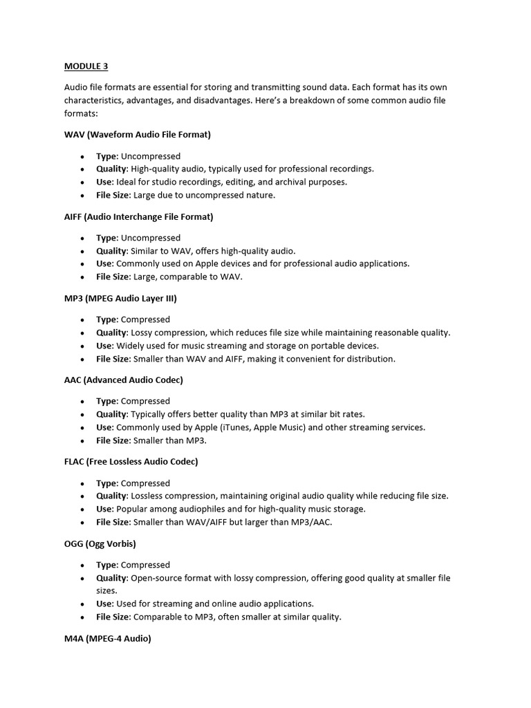 characteristics, advantages, and disadvantages. Here’s a breakdown of some common audio file