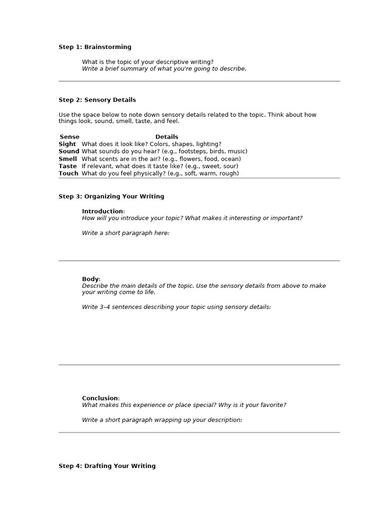 Now, use the information you’ve written in the outline to draft your descriptive writing.