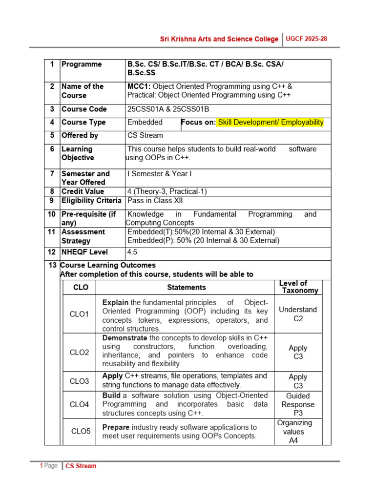 Course Content CLO