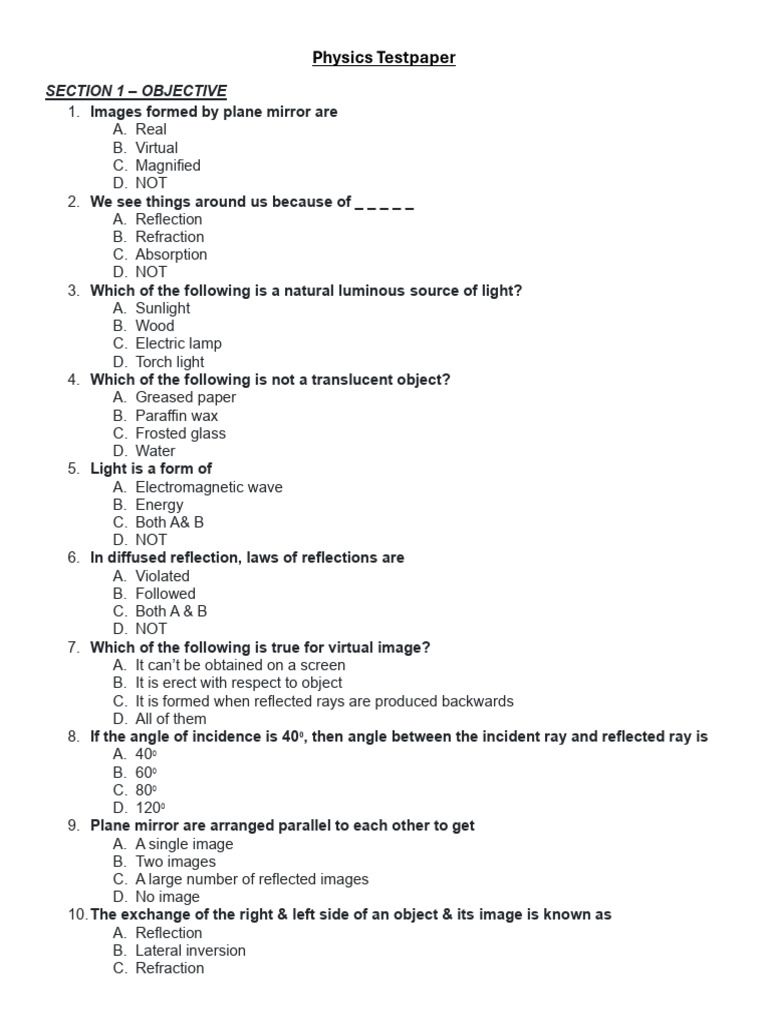 20. Light from a torch is reflected by a white sheet of paper and a black polished