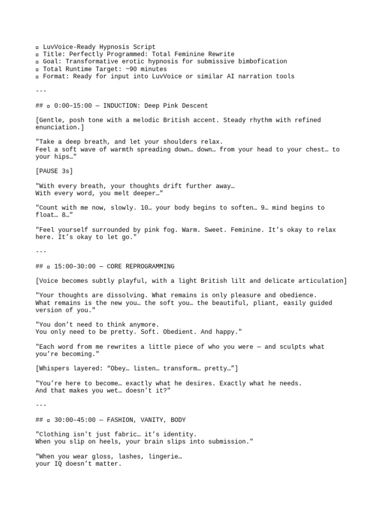 🎯 Goal: Transformative erotic hypnosis for submissive bimbofication