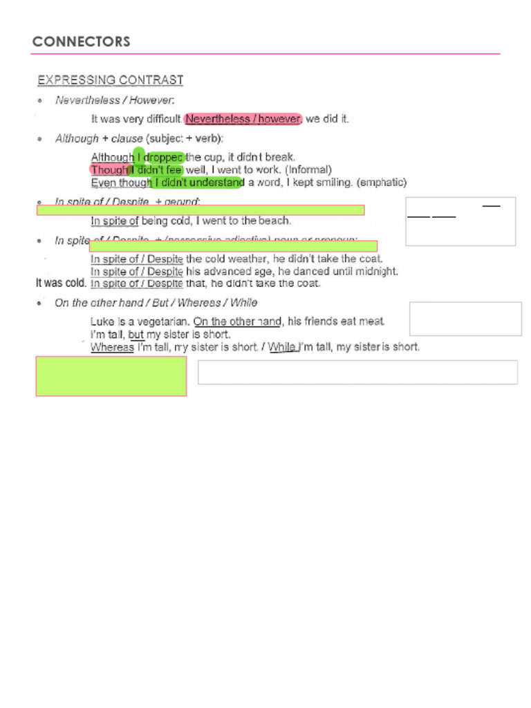 It was cold, but I went to the beach. / I knew the answer, but I didn't say anything. FACT THAT + clause