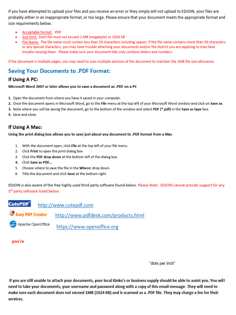or any special characters, you may have trouble attaching your documents and/or the district you are applying to may have