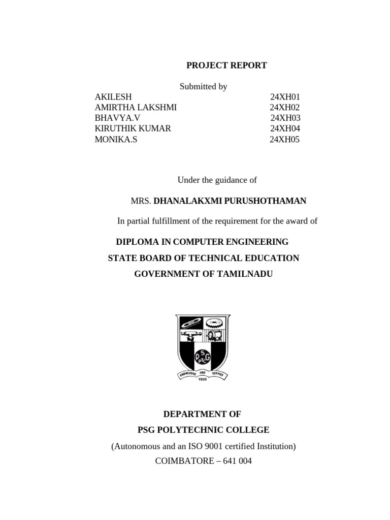 of the State Board of Technical Education, Government of Tamil Nadu. during the