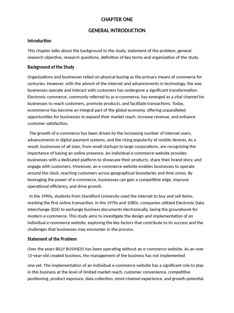 project aims to design and develop an e-commerce website for BILLY BUSINESS to establish its online