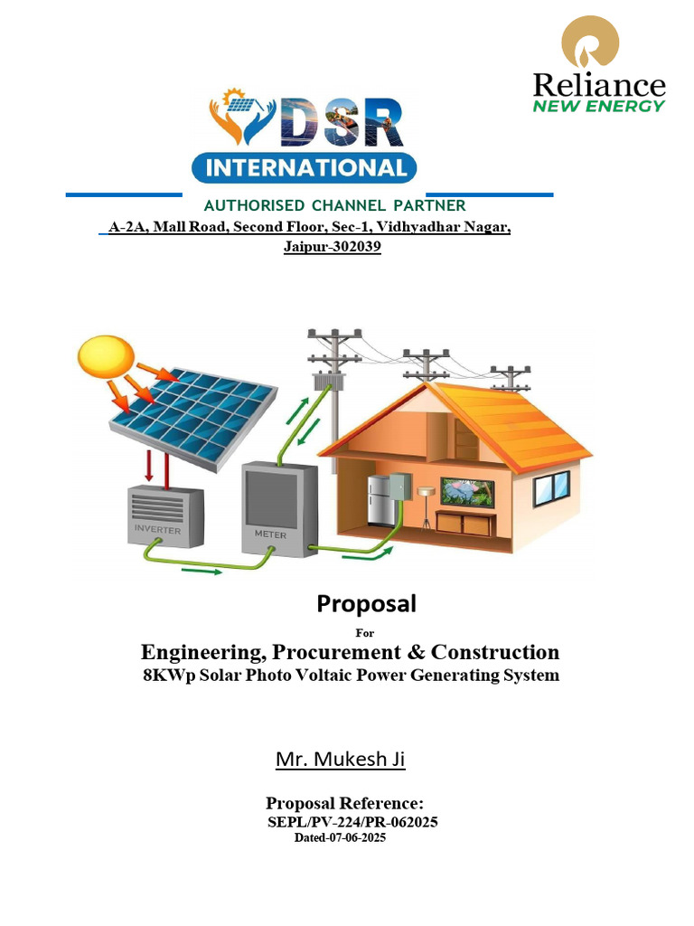 Reliance On Grid System Supply of 8 KWp Solar PV Roof-top System 4,24,000/-