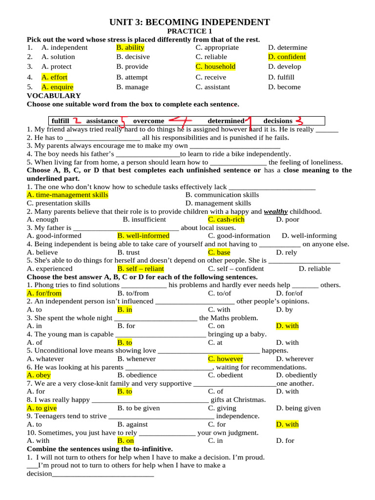 Many young people strive (1) __________ independent. That means you are able to take care of yourself
