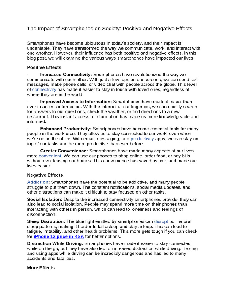 blog post, we will examine the various ways smartphones have impacted our lives.