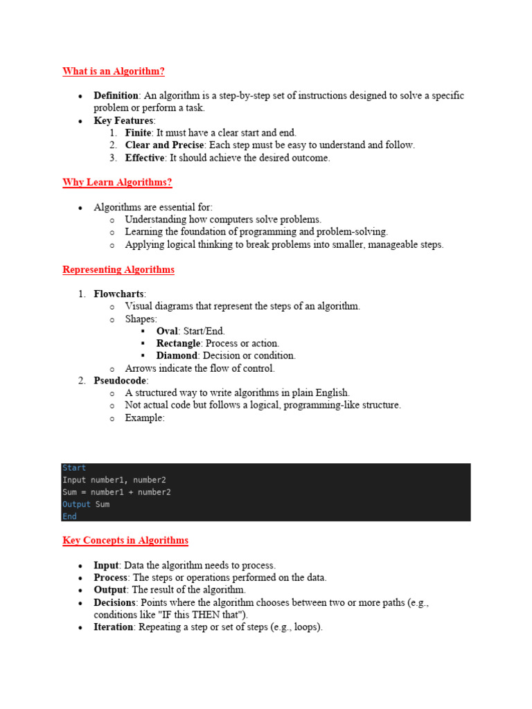 • Output: The result of the algorithm.