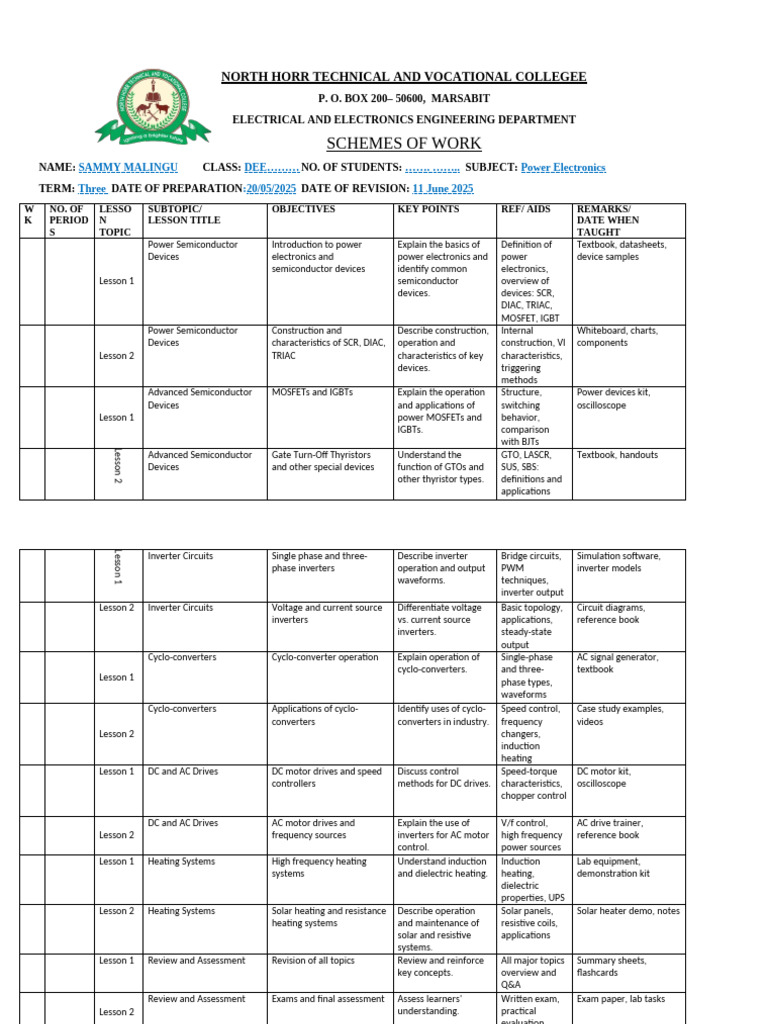 NAME: SAMMY MALINGU CLASS: DEE……… NO. OF STUDENTS: ……. …….. SUBJECT: Power Electronics