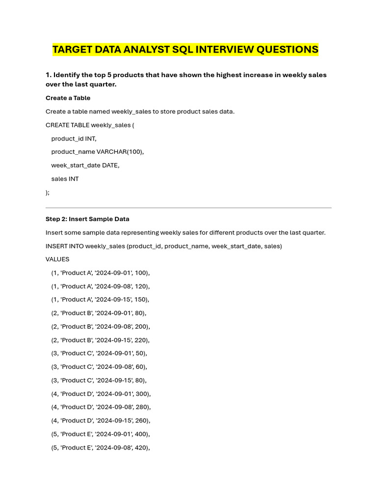 TARGET DATA ANALYST SQL INTERVIEW QUESTIONS