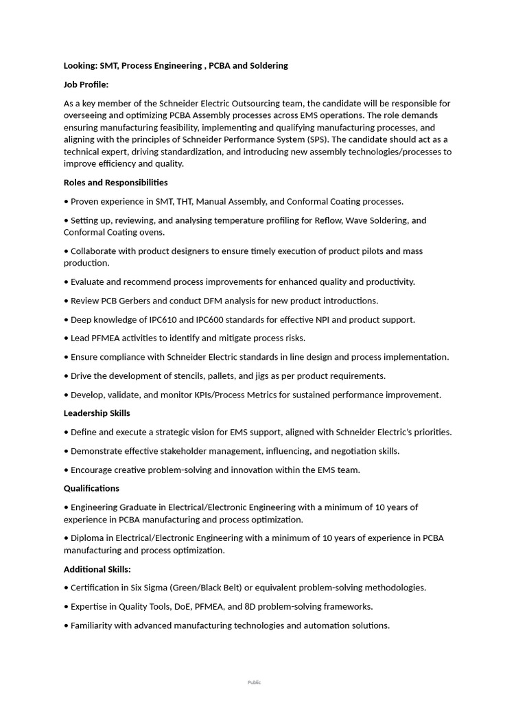 Looking: SMT, Process Engineering , PCBA and Soldering