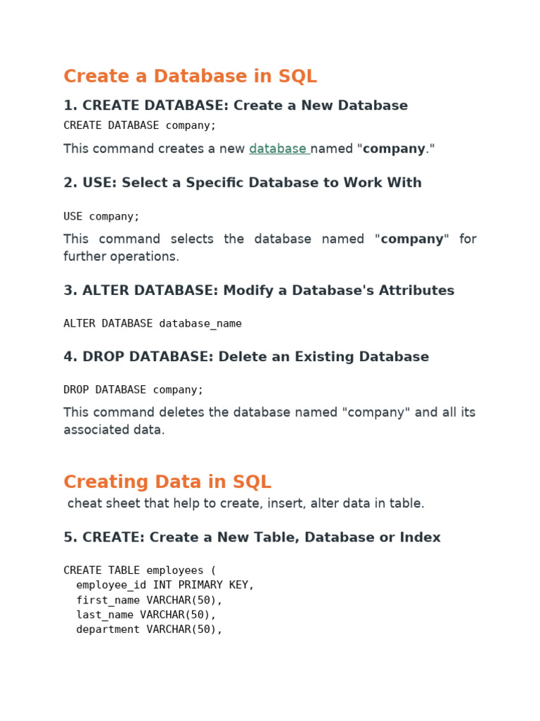 Here in this SQL cheat sheet unveils how to create virtual tables
