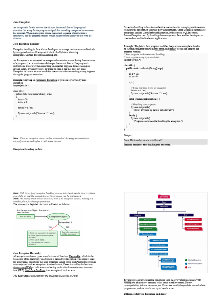 An exception in Java is an event that disrupts the normal flow of the program's Exception handling in Java is an effective mechanism for managing runtime errors