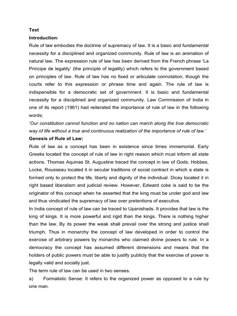 concept. Rule of law has no fixed or articulate connotation; however, the broad