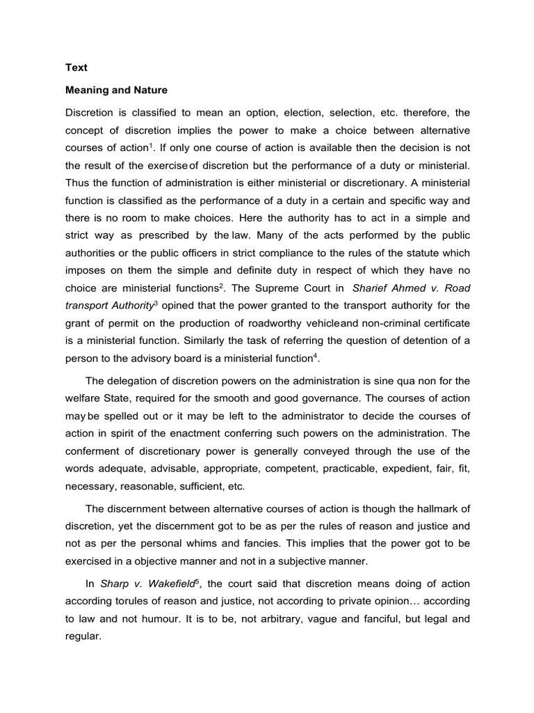In Sharp v. Wakefield5, the court said that discretion means doing of action