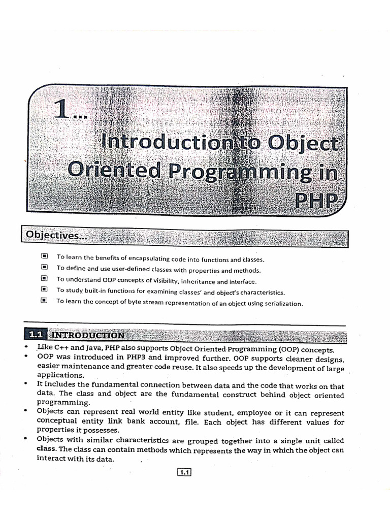 Ga)Advance PHP(GOA-CA:Sem.tv) __1.2___nroducton to Objet vente Programing a PHP