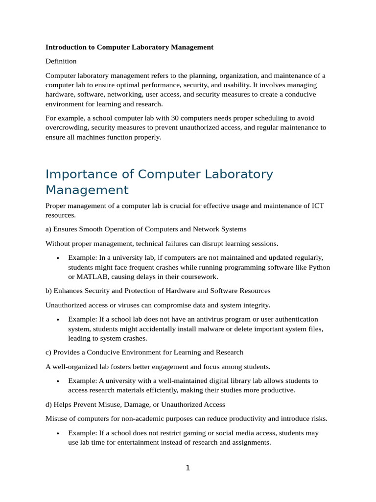 Proper management of a computer lab is crucial for effective usage and maintenance of ICT