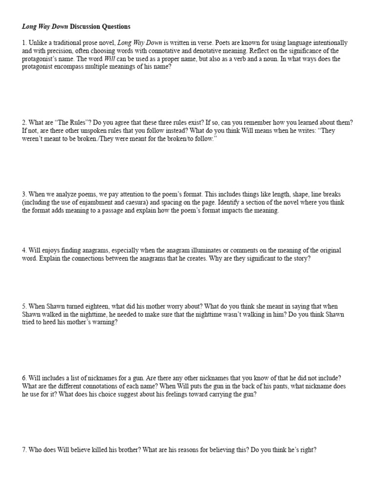 Long Way Down Discussion Questions