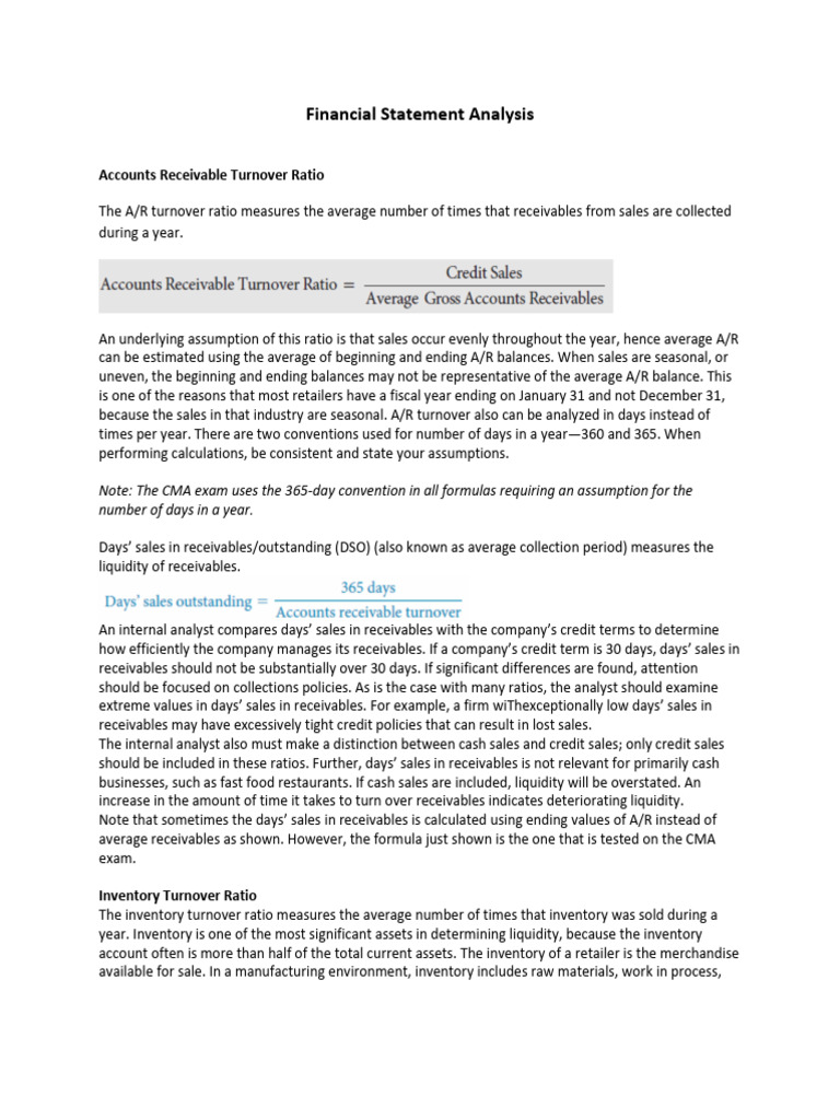 average receivables as shown. However, the formula just shown is the one that is tested on the CMA