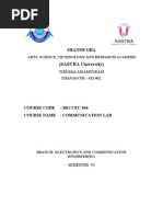 The sampling theorem states that, if the sampling rate in any pulse modulation system exceeds twice the maximum signal frequency, the original signal can be reconstructed in the receiver with minimum distortion. Fs > 2fm is called Nyquist rate. Where fs sampling frequency Fm Modulation signal frequency. If we reduce the sampling frequency fs less than fm, the side bands and the information signal will overlap and we cannot recover the information signal simply by low pass filter. This phenomenon is called fold over distortion or aliasing.There are two methods of sampling. (1) Natural sampling (2) Flat top sampling. Sample & Hold circuit holds the sample value until the next sample is taken. Sample & Hold technique is used to maintain reasonable pulse energy.The duty cycle of a signal is defined as the ratio of Pulse duration to the Pulse repetition period. The duty cycle of 50% is desirous taking the efficiency into account. PROCEDURE:1. Connect trainer to mains and switch on the power. 2. Observe the output of AF generator and pulse generator using CRO and note that AF signal is approximately 3Vp-p of 100HZ frequency and pulse generator output is pulse train of 10VP-P with frequency between 200 HZ and 4KHz. 3. Connect pulse output and AF output to the respective inputs of sampling circuit. 4. Connect one of the input of oscilloscope to the sampling circuit output and another to AF signal. 5. Initially set the amplitude of the AF generator to minimum level and sampling frequency to 200Hz(by adjusting the potentiometer). Observe the output of sampling circuit by varying the amplitude of modulating signal. You can notice the amplitude of sampling pulse is varying in accordance with the amplitude of the modulating signal. 6. Connect sampling circuit output to reconstructing circuit. 7. Observe the output of reconstructing circuit (AF signal) at 200Hz sampling frequency until you get the original signal. Statement: The Nyquist Theorem states that in order to recover the original signal from the samples of the signal, the signal must be sampled at a minimum of twice the maximum frequency of the signal. Note: The sampling output is uni-polar sampled i.e, only positive side