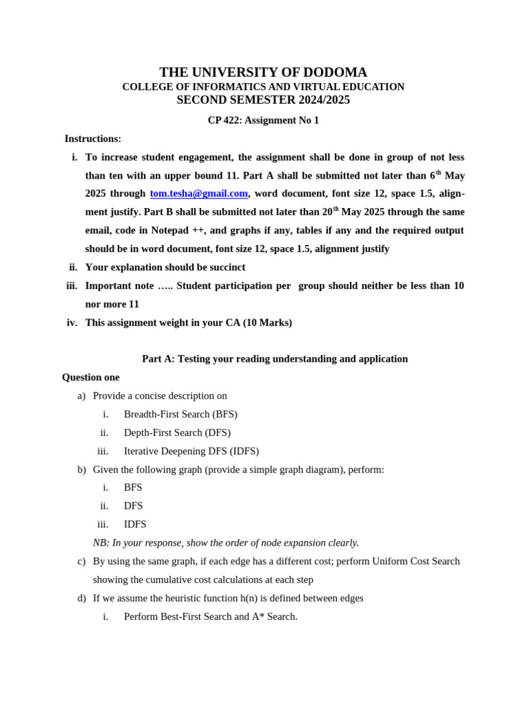a) Implement the Breadth-First Search (BFS), Depth-First Search (DFS) and A* Search