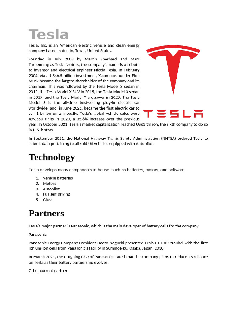 Tesla's major partner is Panasonic, which is the main developer of battery cells for the company.
