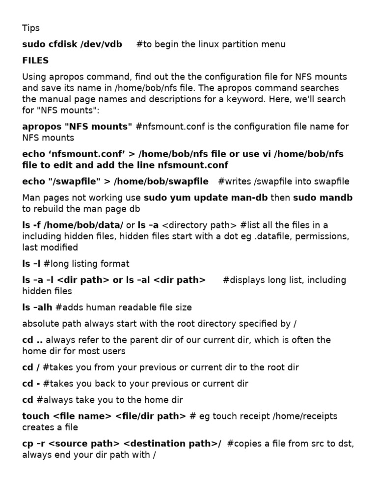 echo ‘nfsmount.conf’ > /home/bob/nfs file or use vi /home/bob/nfs