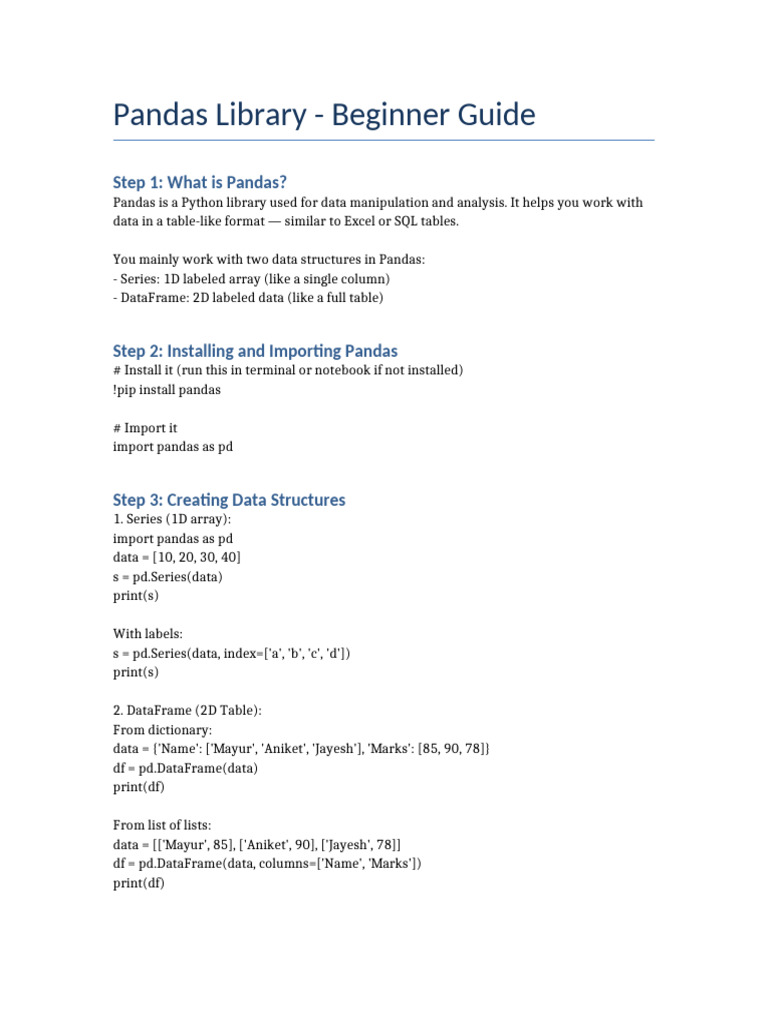 Pandas is a Python library used for data manipulation and analysis. It helps you work with