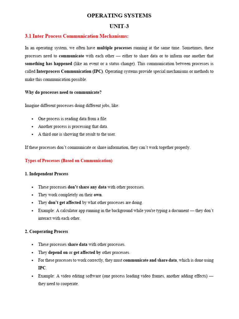 called Interprocess Communication (IPC). Operating systems provide special mechanisms or methods to