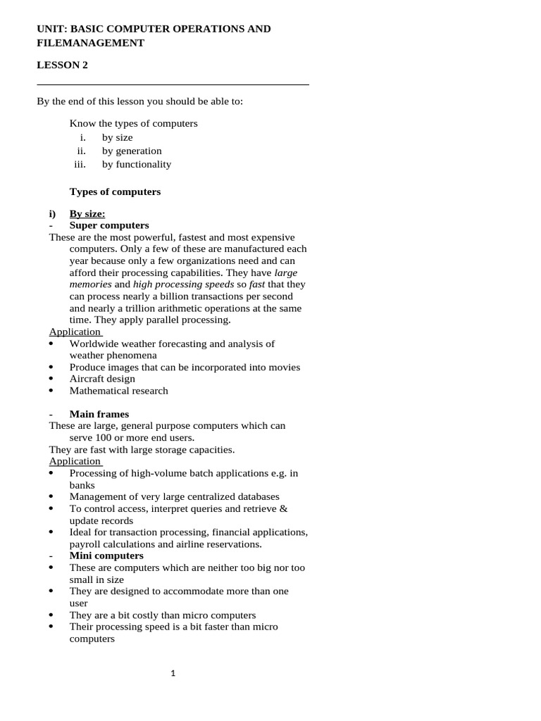 UNIT: BASIC COMPUTER OPERATIONS AND