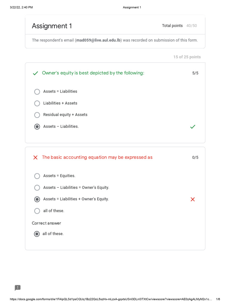 The respondent's email (mad059@live.aul.edu.lb) was recorded on submission of this form.