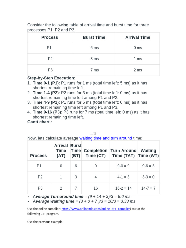 Average Turnaround time = (9 + 14 + 3)/3 = 8.6 ms