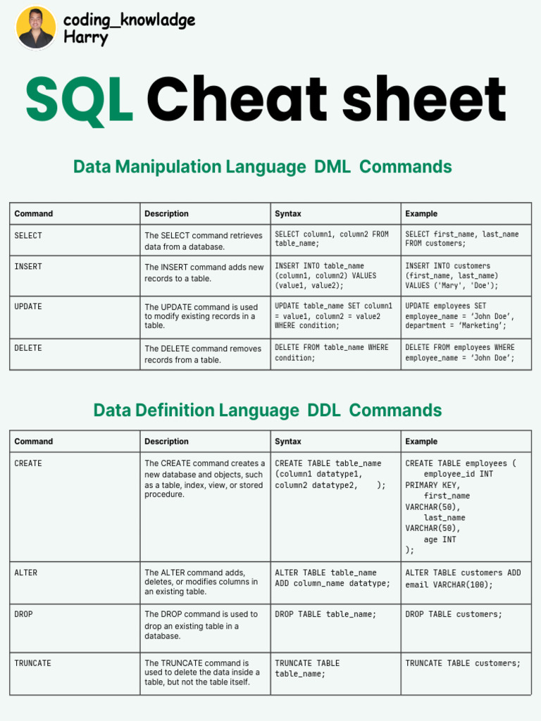 SQL Cheat sheet