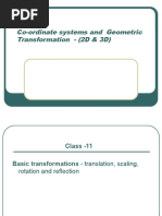 In all computer graphics system ,the fundamentally ability is to simulate the manipulation of an object in space. A graphics system should system allow the programmer to define picture that include a variety of transformation. For ex. He should be able to magnify pictures that include more information about that information or reduce it so that more component of picture is visible. It is also able to change scale of a symbol. In computer graphics ,there are two types of transformation:1.2D Transformation 2.3D Transformation The operations which are performed by 2D transformation are as 1. Translation 2. Rotation 3. Scaling 4. Reflection 5. Shear