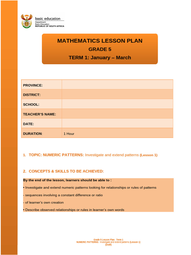 Grade 5 Lesson Plan: Term 1 Page 5 of 5
