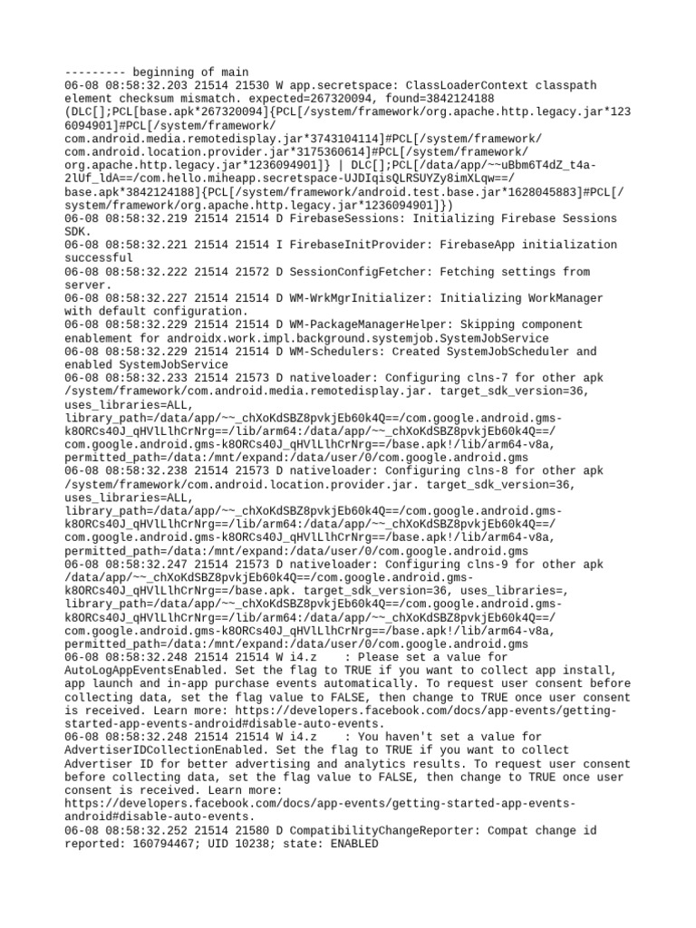 06-08 08:58:32.203 21514 21530 W app.secretspace: ClassLoaderContext classpath