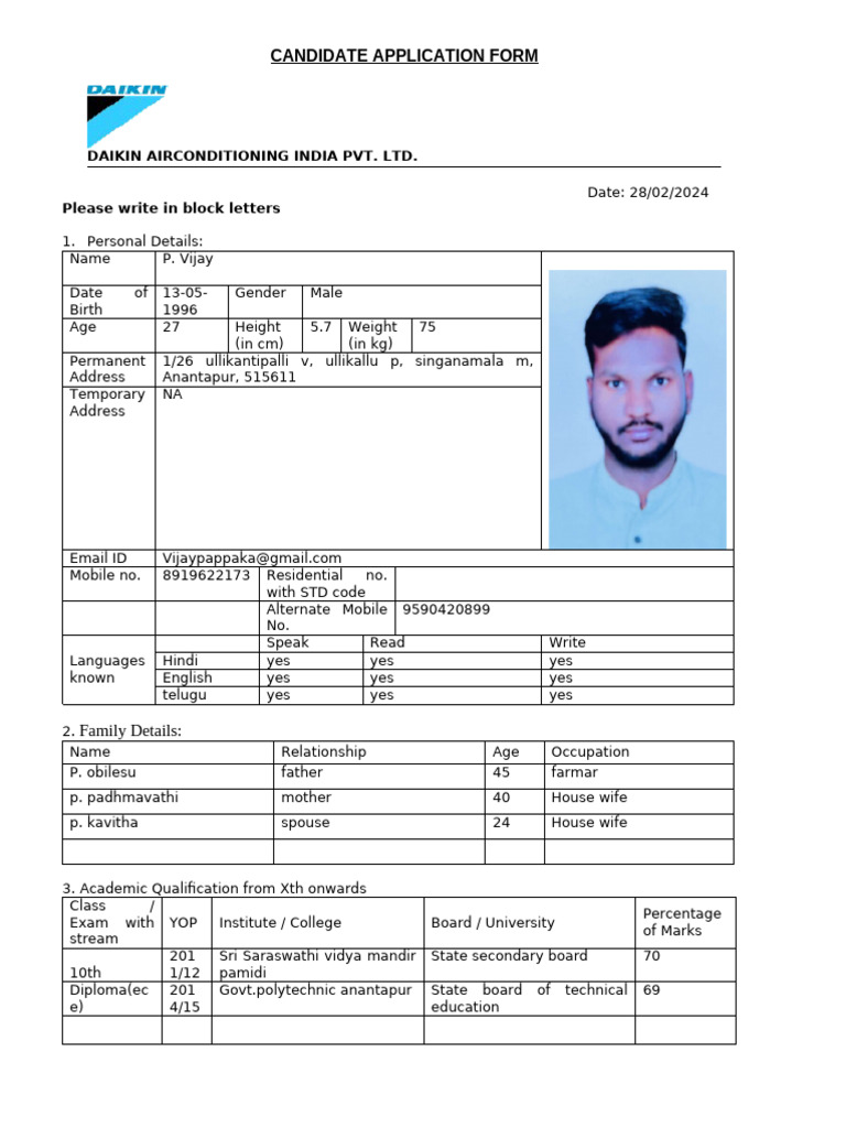 9. Do you have any close relatives working with us, if Yes, Mention the details:-