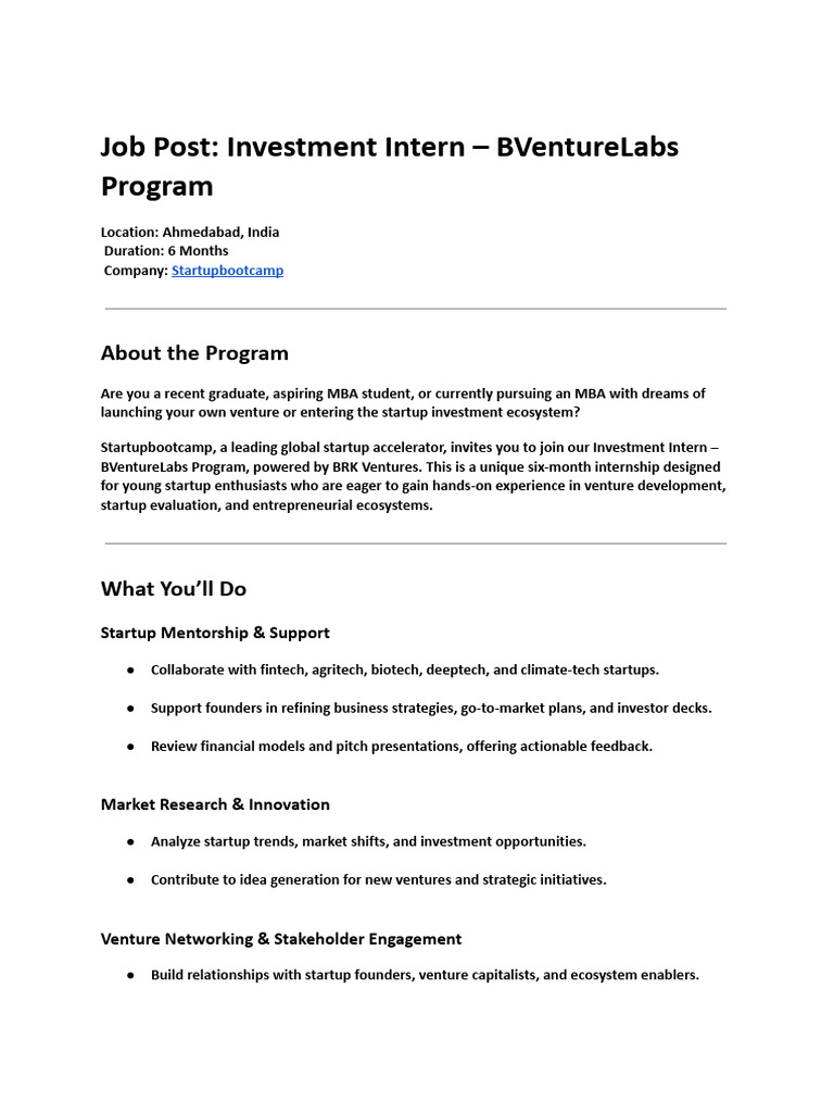This internship could be your launchpad into the world of venture capital, entrepreneurship, and