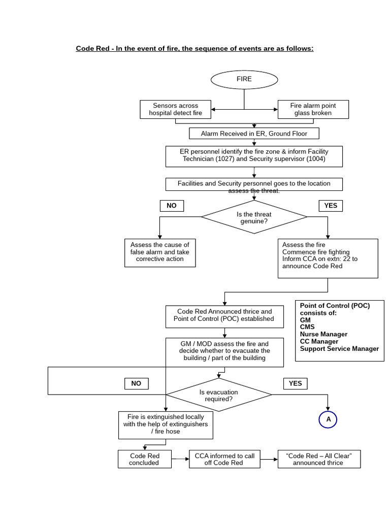 Code Red - In the event of fire, the sequence of events are as follows: