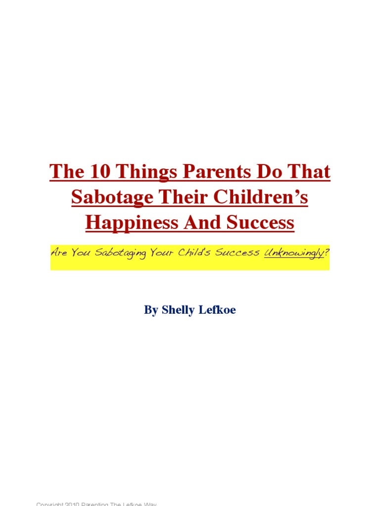 The 10 Things Parents Do That Sabotage Their Childrens Happiness AndSuccess