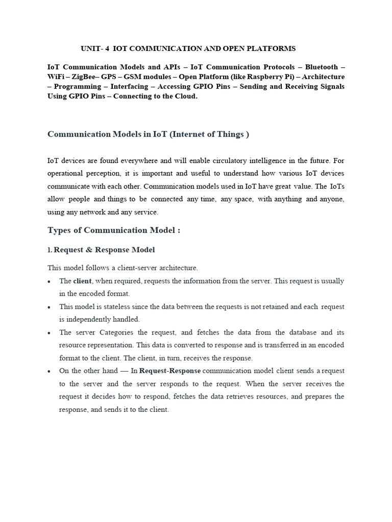 communicate with each other. Communication models used in IoT have great value. The IoTs