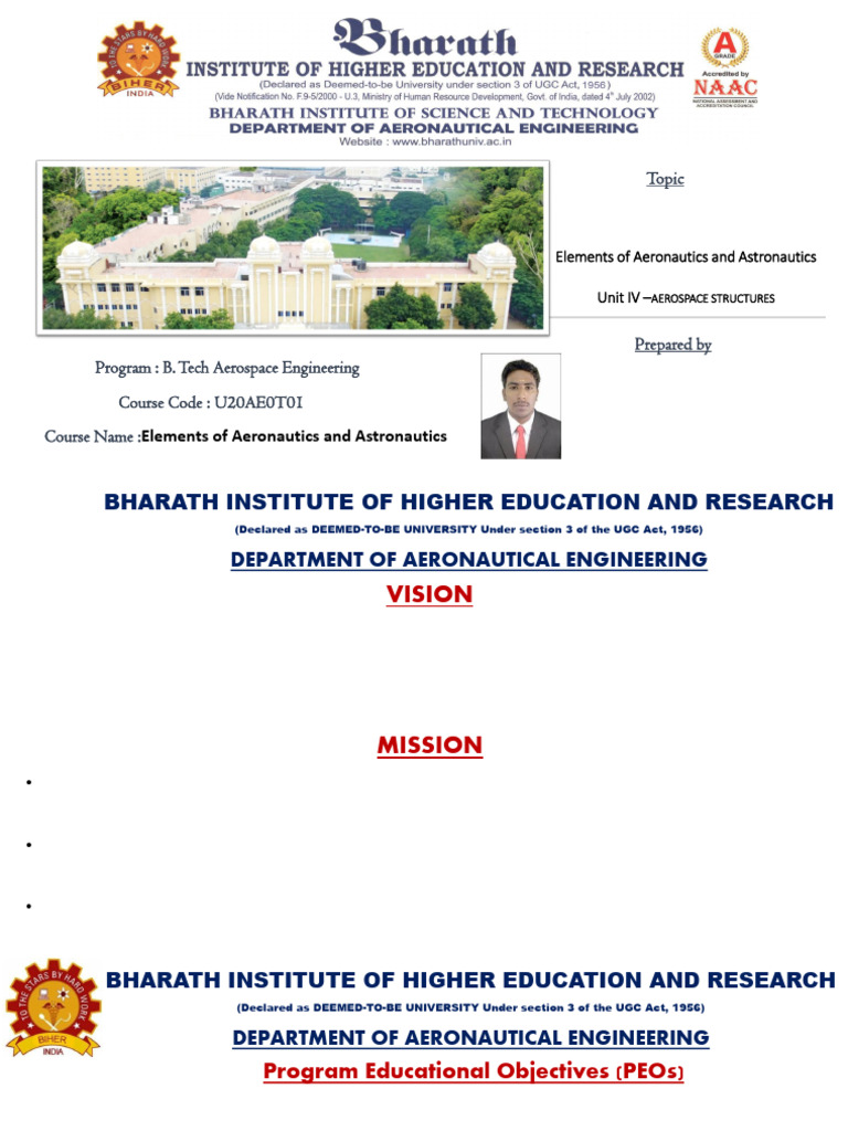 Course Name :Elements of Aeronautics and Astronautics karthikeyan.aero@bharathuniv.ac.in