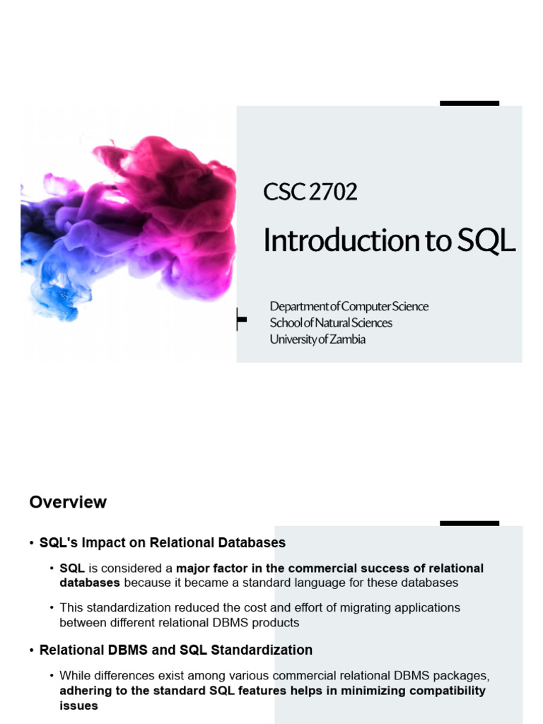 • Relational DBMS and SQL Standardization
