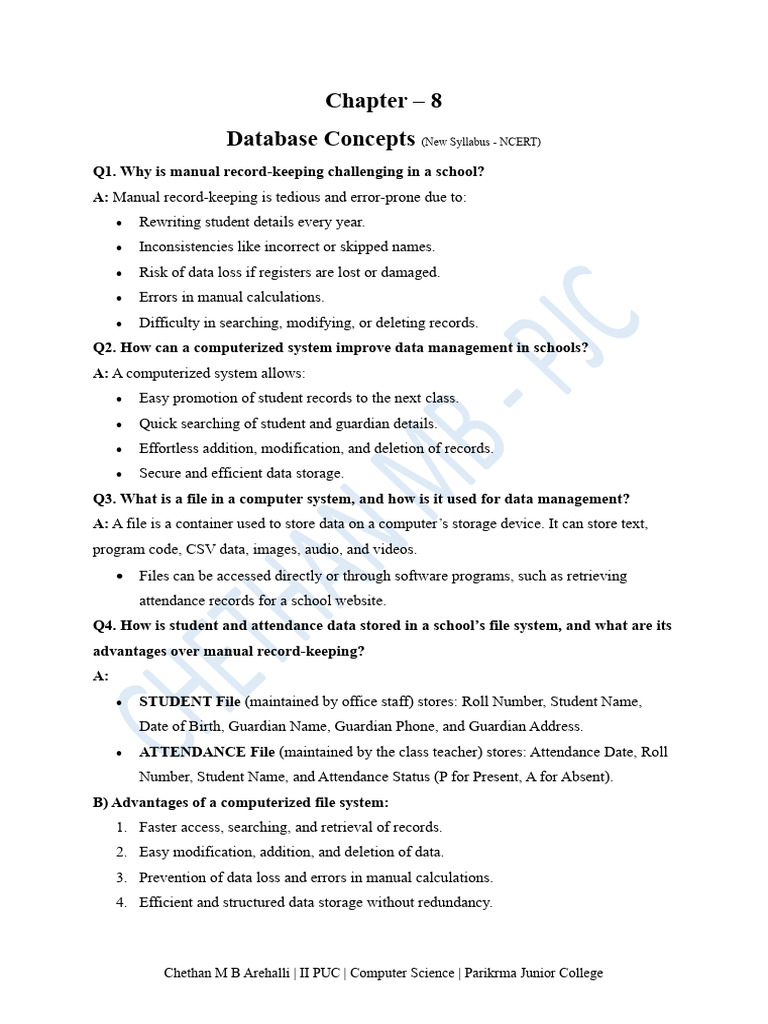 Database Concepts (New Syllabus - NCERT)