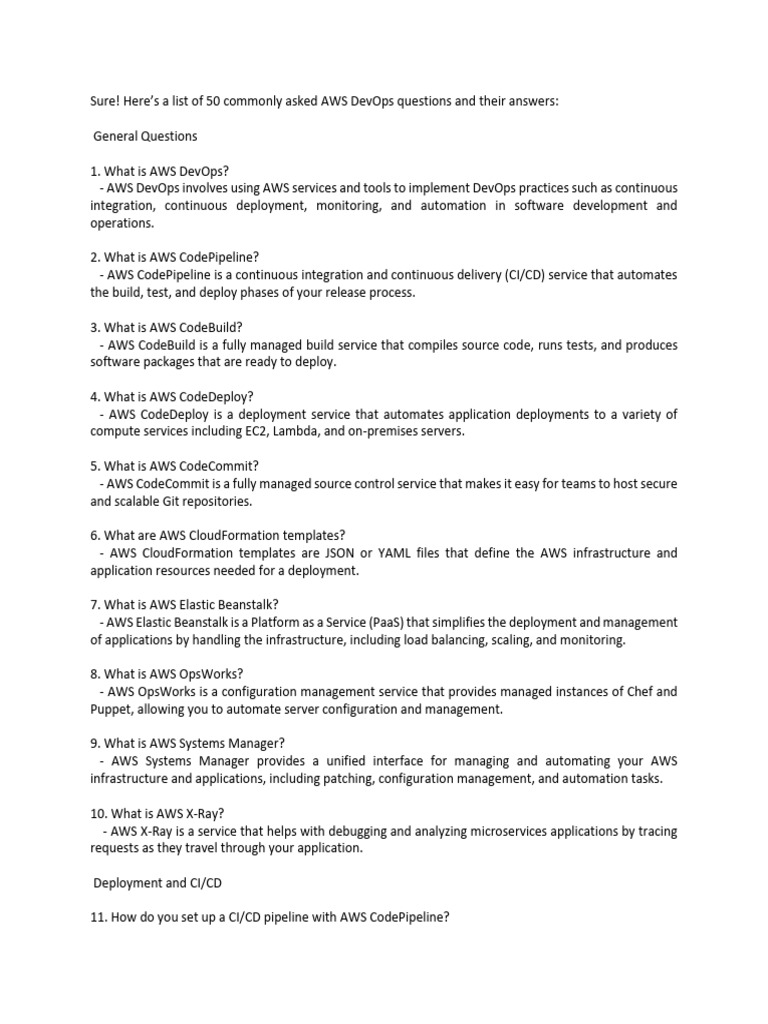 Here’s a list of 50 commonly asked AWS DevOps questions and their answers: