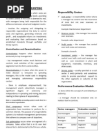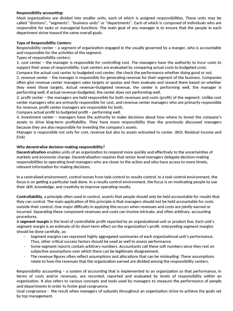 terms of costs and/or revenues, are recorded, reported and evaluated by levels of responsibility within an