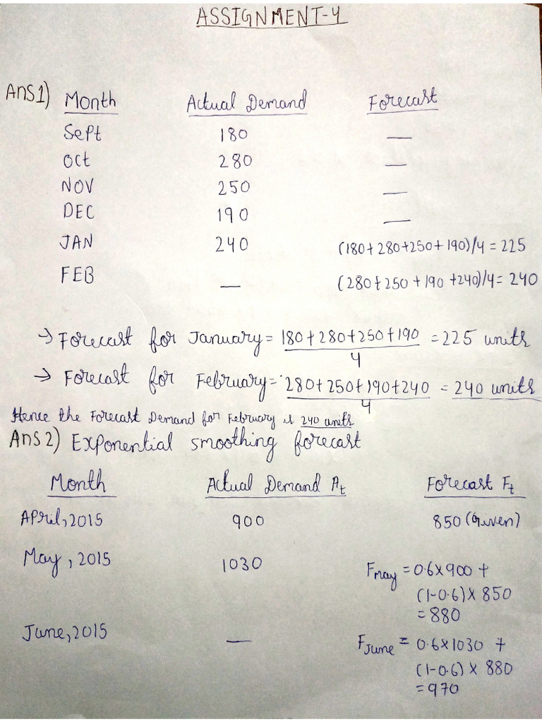 The document discusses demand forecasting using various methods, including exponential smoothing and economic order quantity (EOQ) calculations. It presents monthly demand figures and forecasts for different months, along with the necessary calculations for determining future demand. Additionally, it outlines the costs associated with holding inventory and the implications for economic order quantity.
