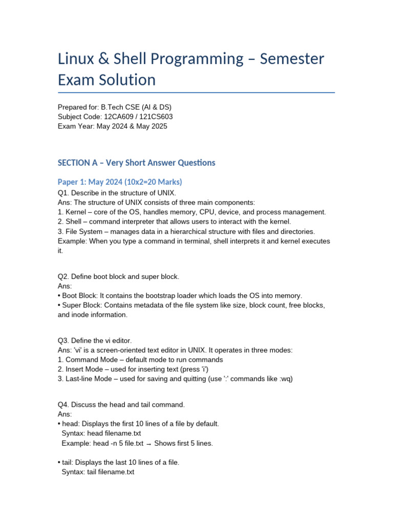 Linux & Shell Programming – Semester