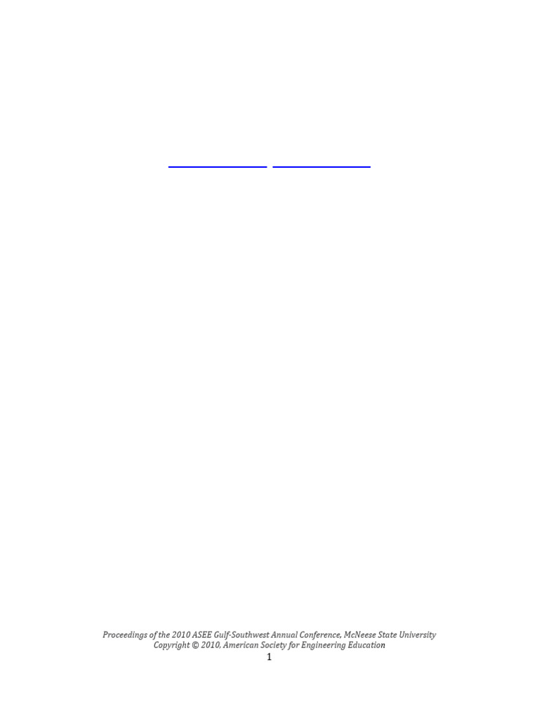 Proceedings of the 2010 ASEE GulfSouthwest Annual Conference, McNeese State University